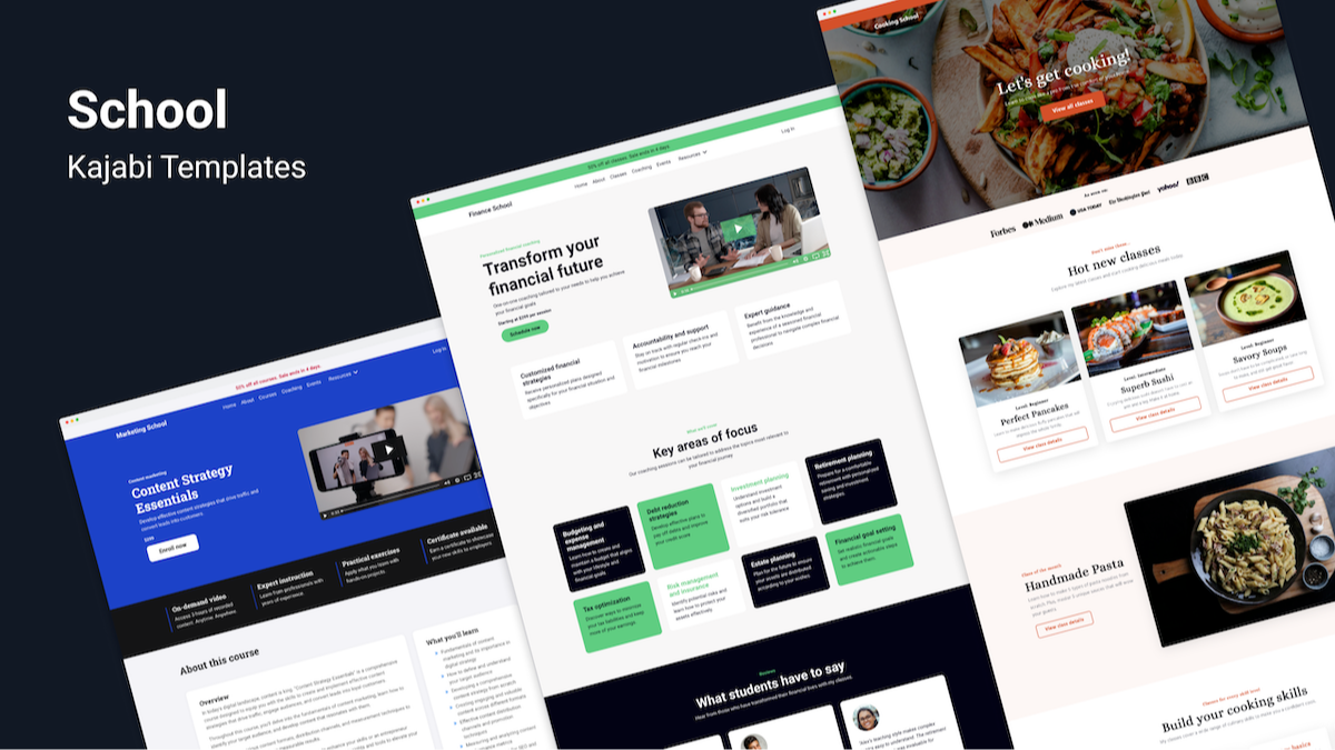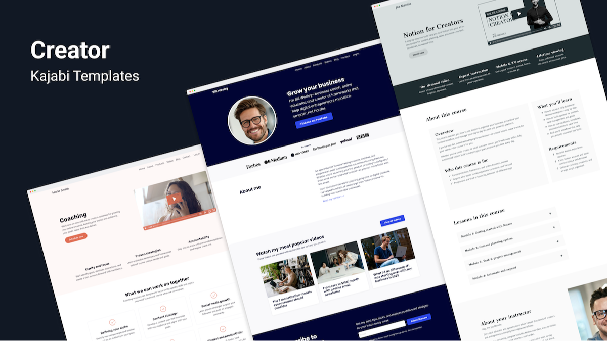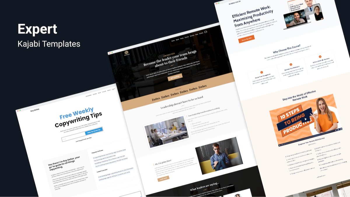 These templates are created by the same person that designed Kajabi’s official Prosper, Taylor, and Creative templates (found in their free library).