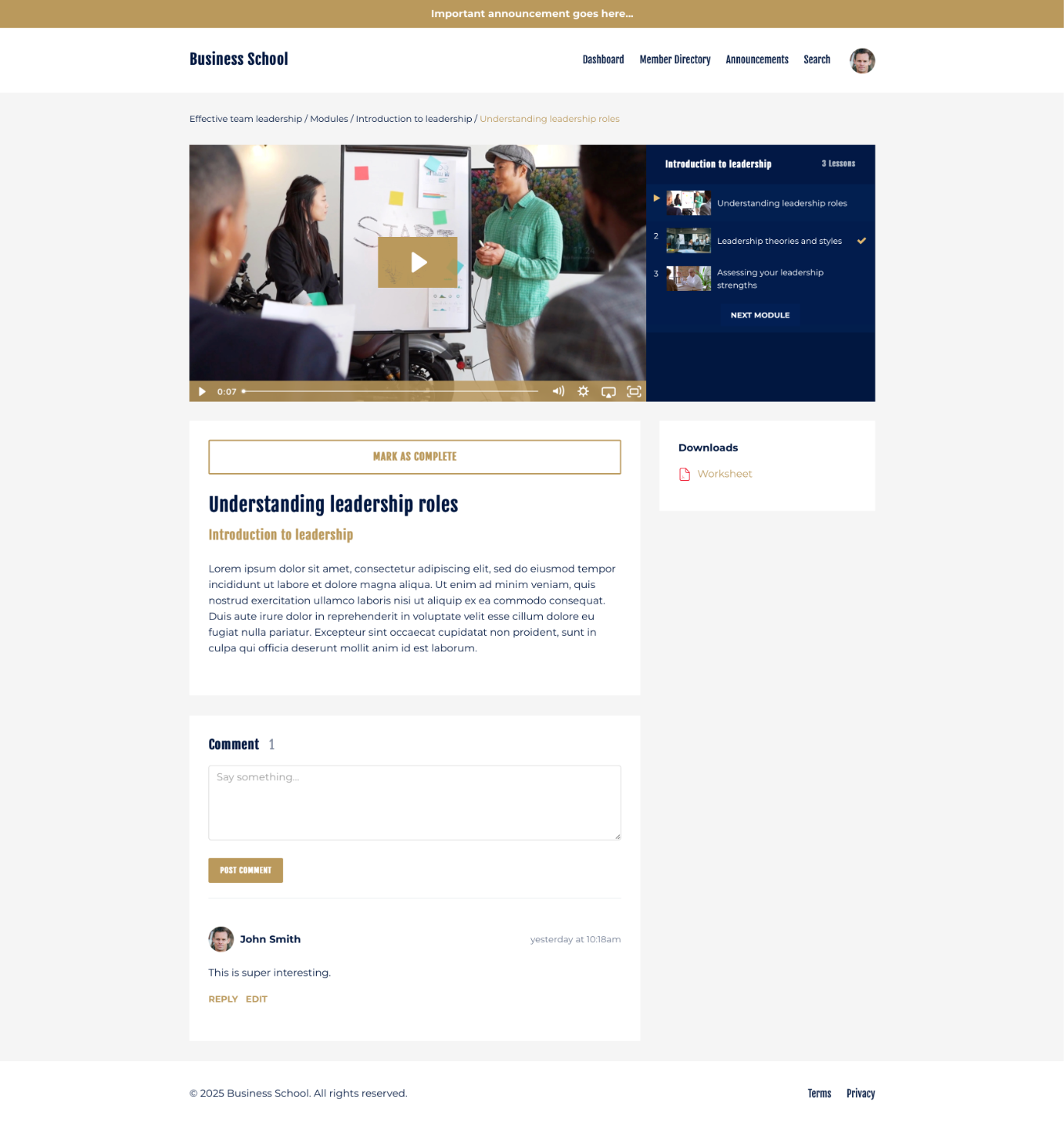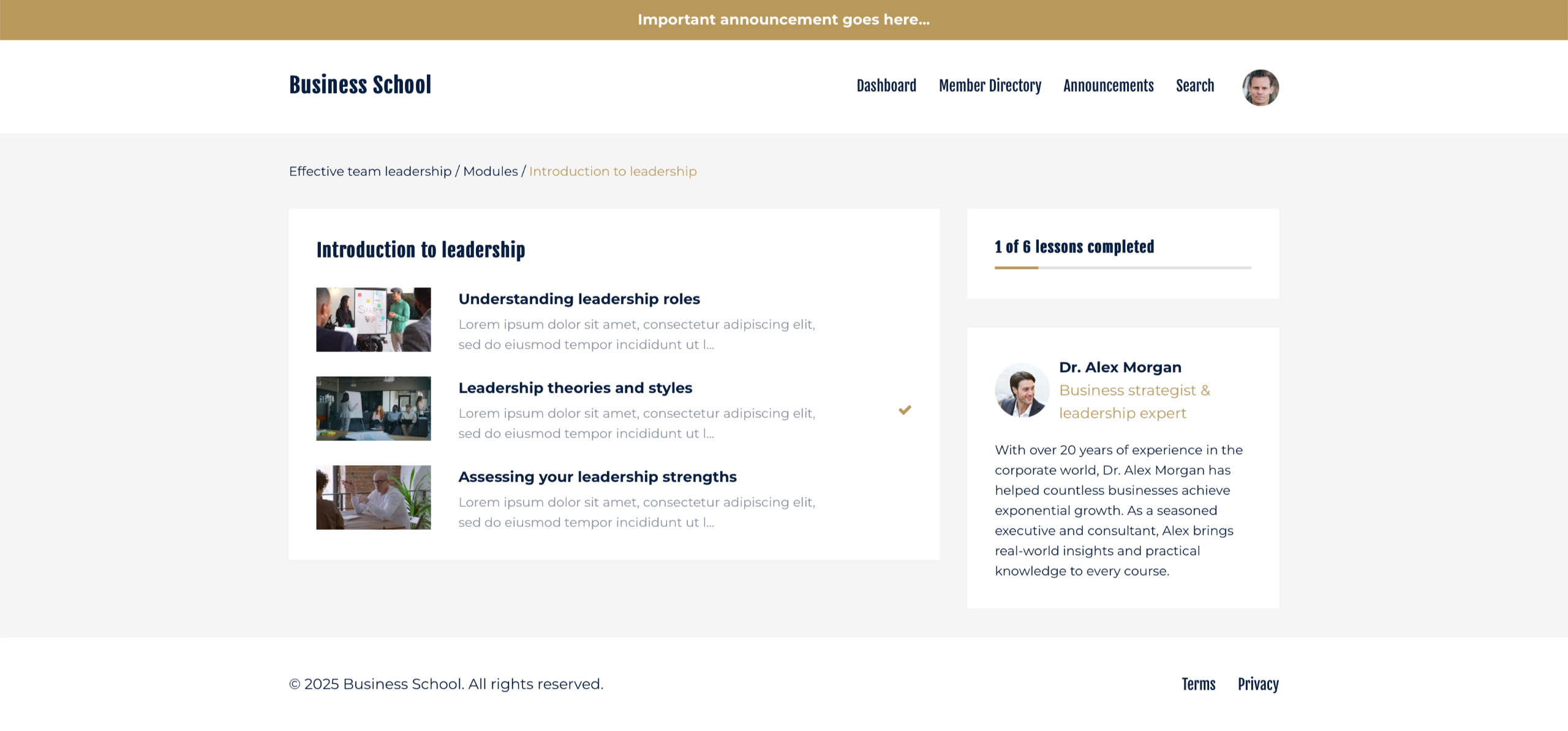 This professional template is perfect for business courses, featuring a school-like structure that showcases a variety of courses for students to choose from.